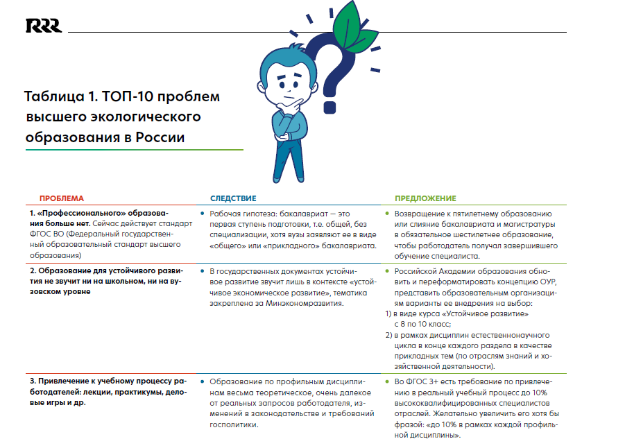 В этой идеологии «поучиться на эколога» становится слишком примитивным подходом. Остается надеяться, что здоровая рыночная экономика будет постоянно подталкивать все образовательные организации к постоянному совершенствованию своих образовательных программ и давать такие знания, умения и навыки своим выпускникам, которые и на старте карьеры и в течение всей их профессиональной жизни будут чрезвычайно востребованы и позволят им поддерживать высокие стандарты жизни, тем более с учетом все повышающихся экологических требований к отраслям, производствам и просто к реальным людям.