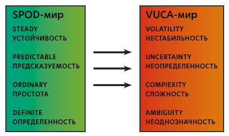 Сегодня в мире появляются новые ориентиры, уходят в прошлое некоторые стратегии, на их место приходит новая идеология. Если ты не исповедуешь именно ее, то можешь стать изгоем. Причем речь идет не только о людях, но и об организациях, и даже целых отраслях. Стало модным и актуальным быть зеленым, а в некоторых сферах пошли дальше, и появилась, например, голубая экономика. Вот только теперь-то мы и поняли, что жили в тихом, уютном, комфортном мире, а ведь даже не задумывались над этим. Трансформация стабильности в нестабильность и постоянную изменчивость можно продемонстрировать так (рис. 1)